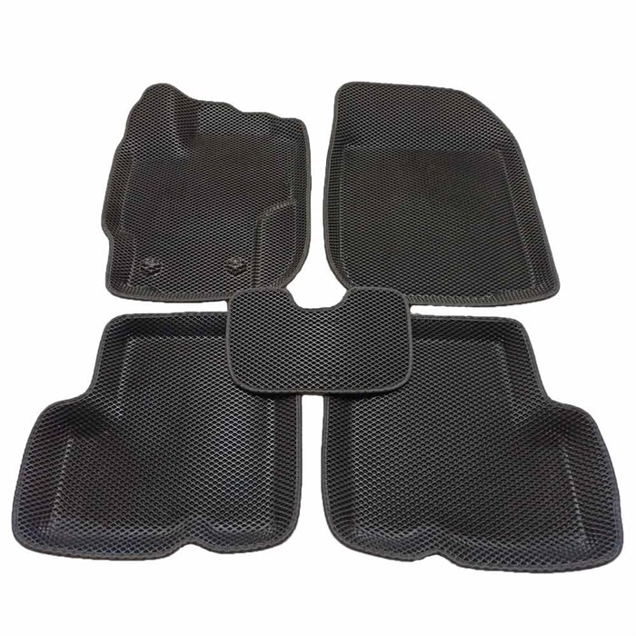 - Комплект ковриков ЕVA 3D салон состоит из 5 элементов , 4 Коврика и перемычка , водительский коврик слитный - площадка отдыха ноги без разрезов, все ковры отбортованы. Высота бортов от 3 до 6 см , в зависимости от высота порогов автомобиля , наши лекало качественные и идеально покрывают пол в салоне .