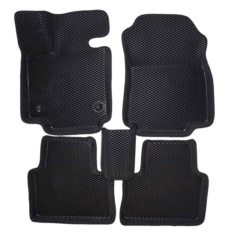 - Комплект ковриков ЕVA 3D салон состоит из 5 элементов, 4 Коврика и перемычка , водительский коврик слитный - площадка отдыха ноги без разрезов, все ковры отбортованы. Высота бортов от 3 до 6 см , в зависимости от высота порогов автомобиля , наши лекало качественные и идеально покрывают пол в салоне .